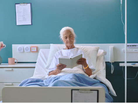Immagine 1: Anziana allettata che legge un libro